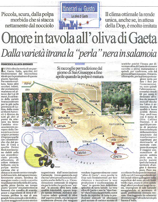 E se la meta fosse Gaeta? - Onore in tavola all'oliva di Gaeta - La Repubblica 21/02/2006