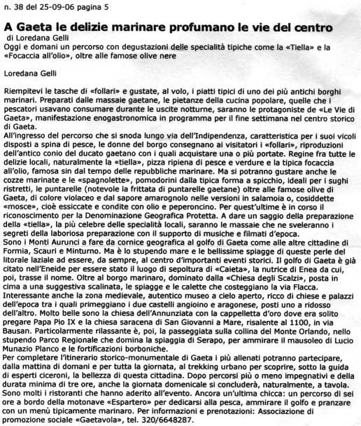 Le Vie di Gaeta 2006 - Il Giornale 25/09/2006